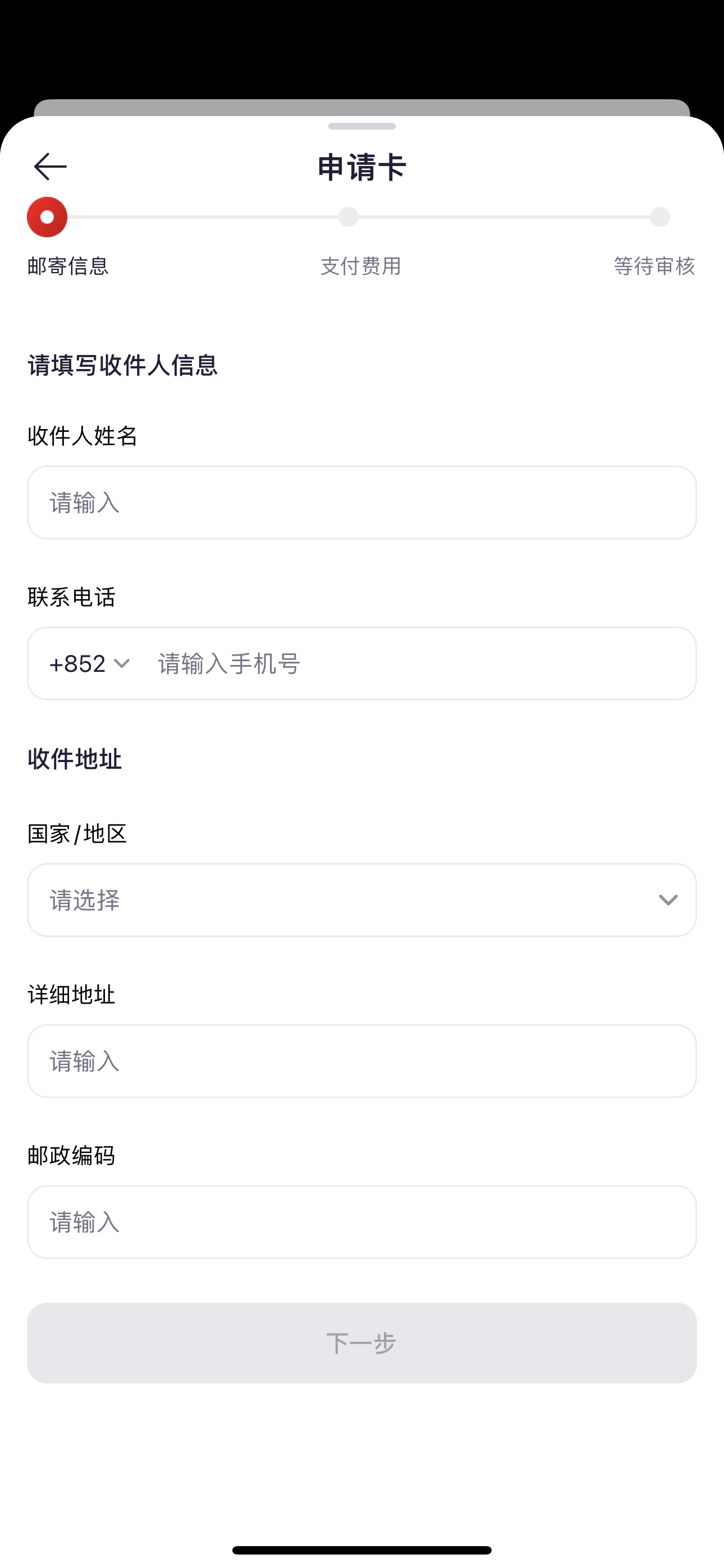 点击【卡片】-【申请卡片】-立即申请,验证手机号,填写收件信息