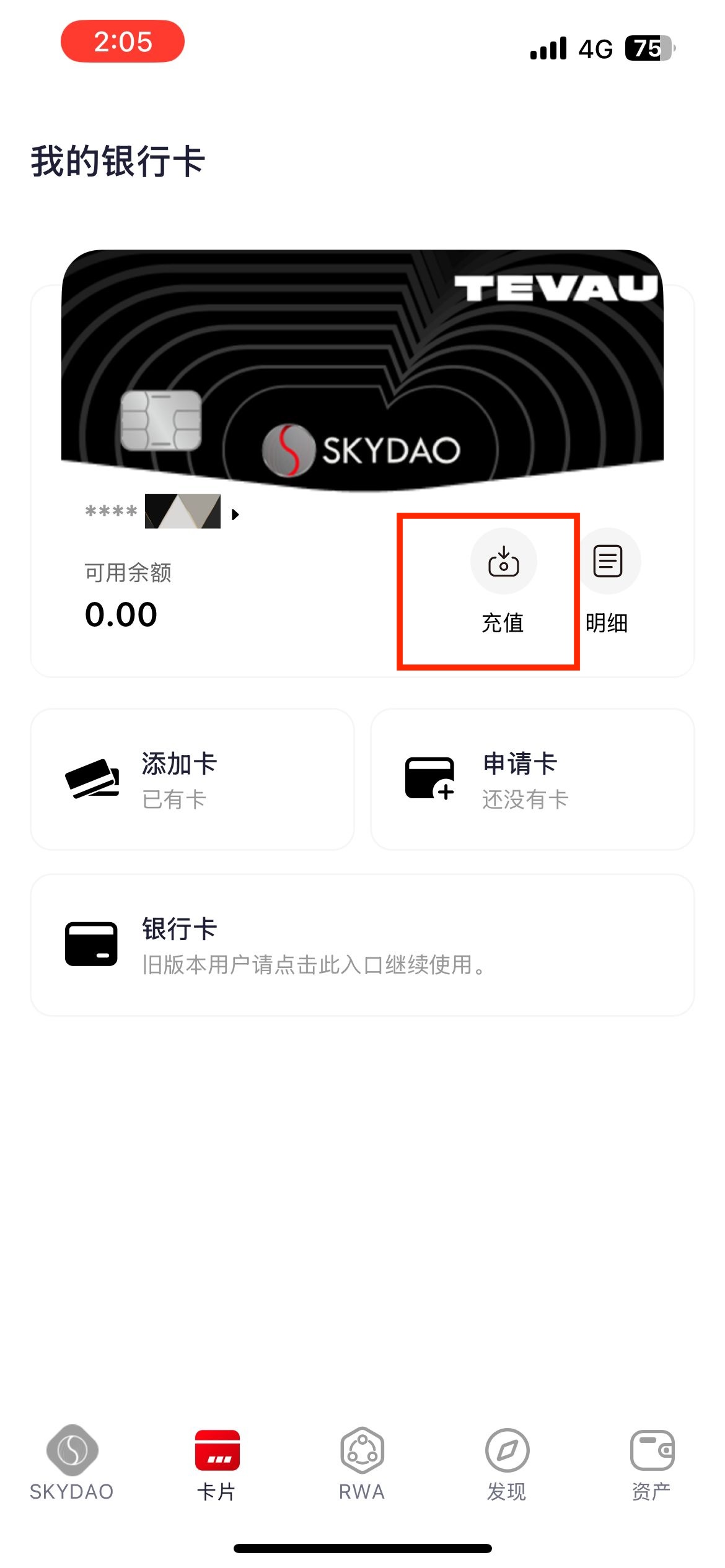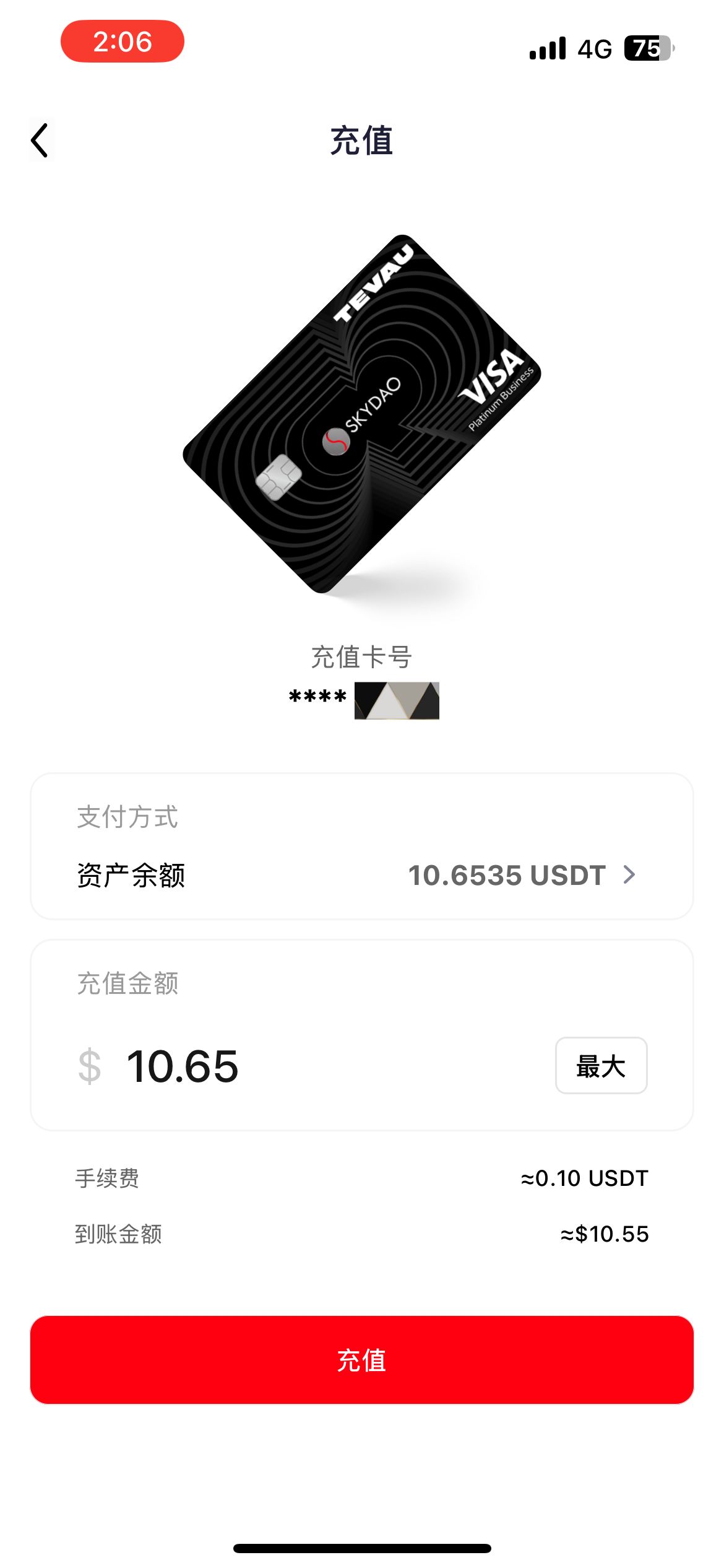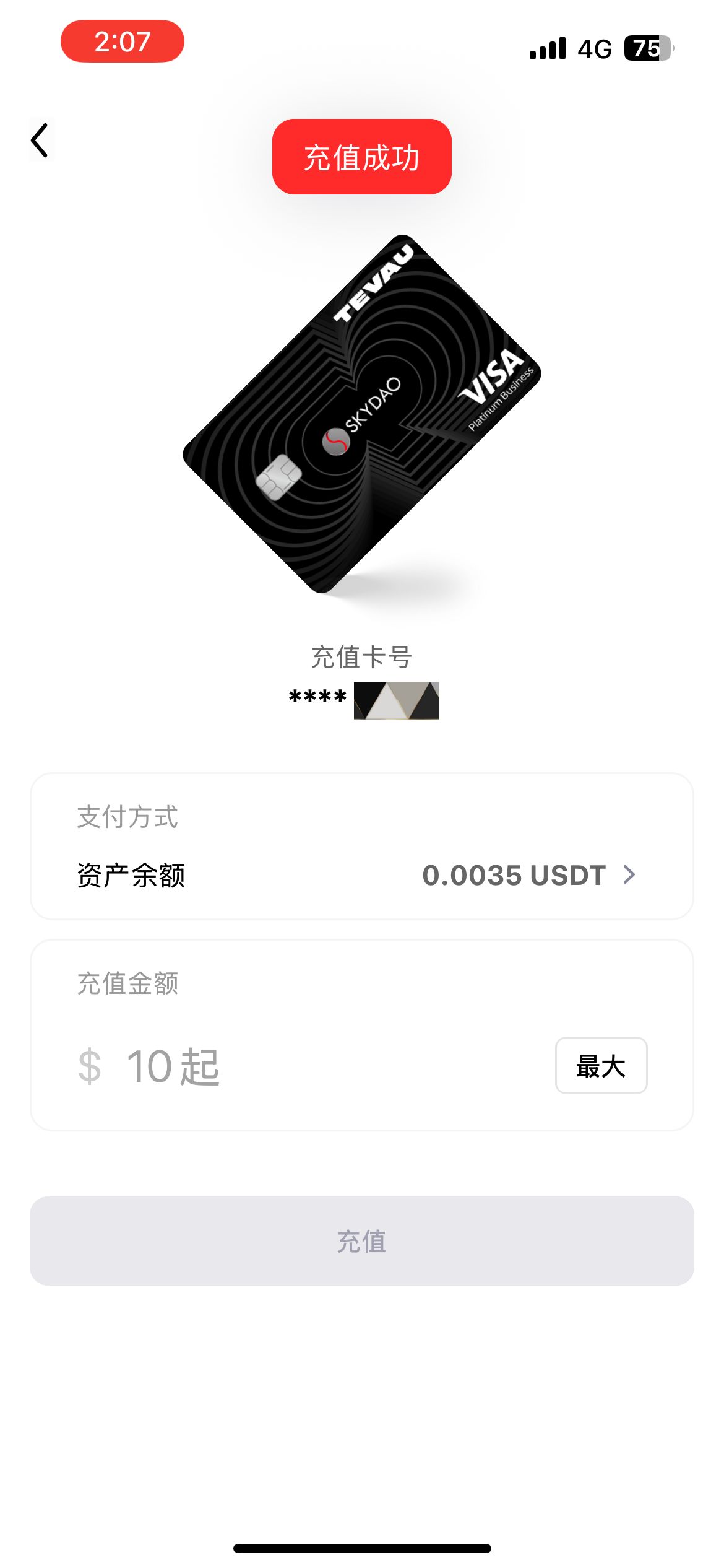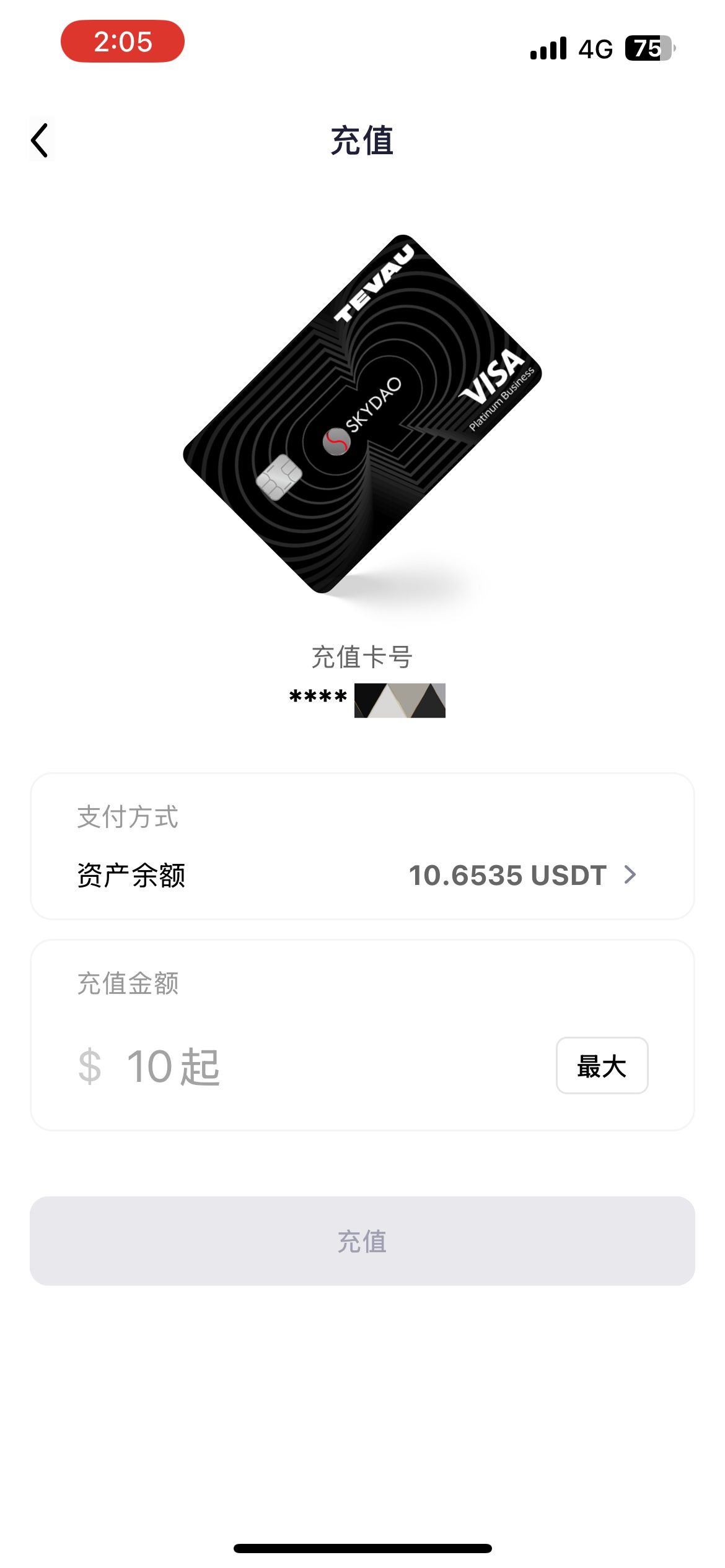 点击卡片-【充值】,填写需要充值的金额,点击充值即可完成卡片充值。