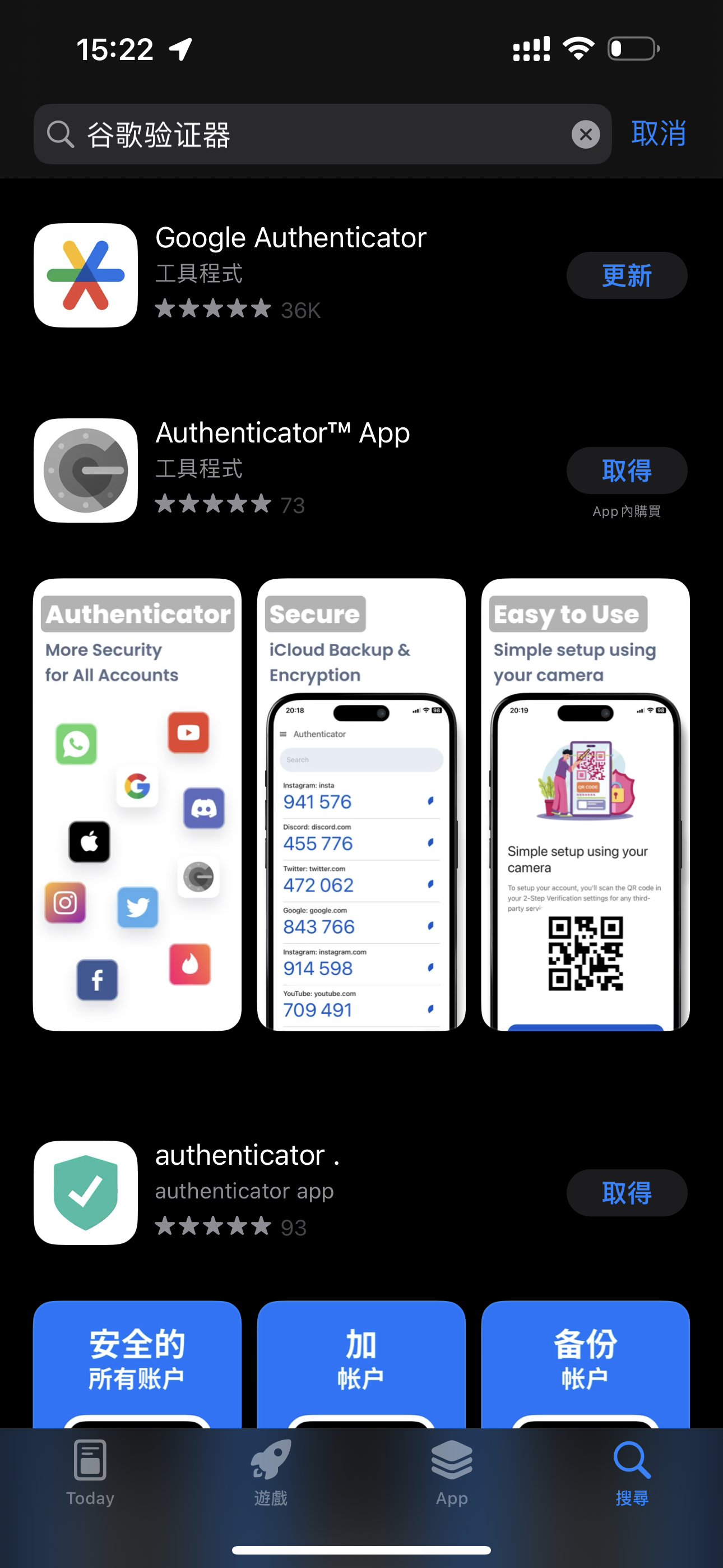 首先从您设备的应用商店里搜索 "Google Authenticator",并下载安装